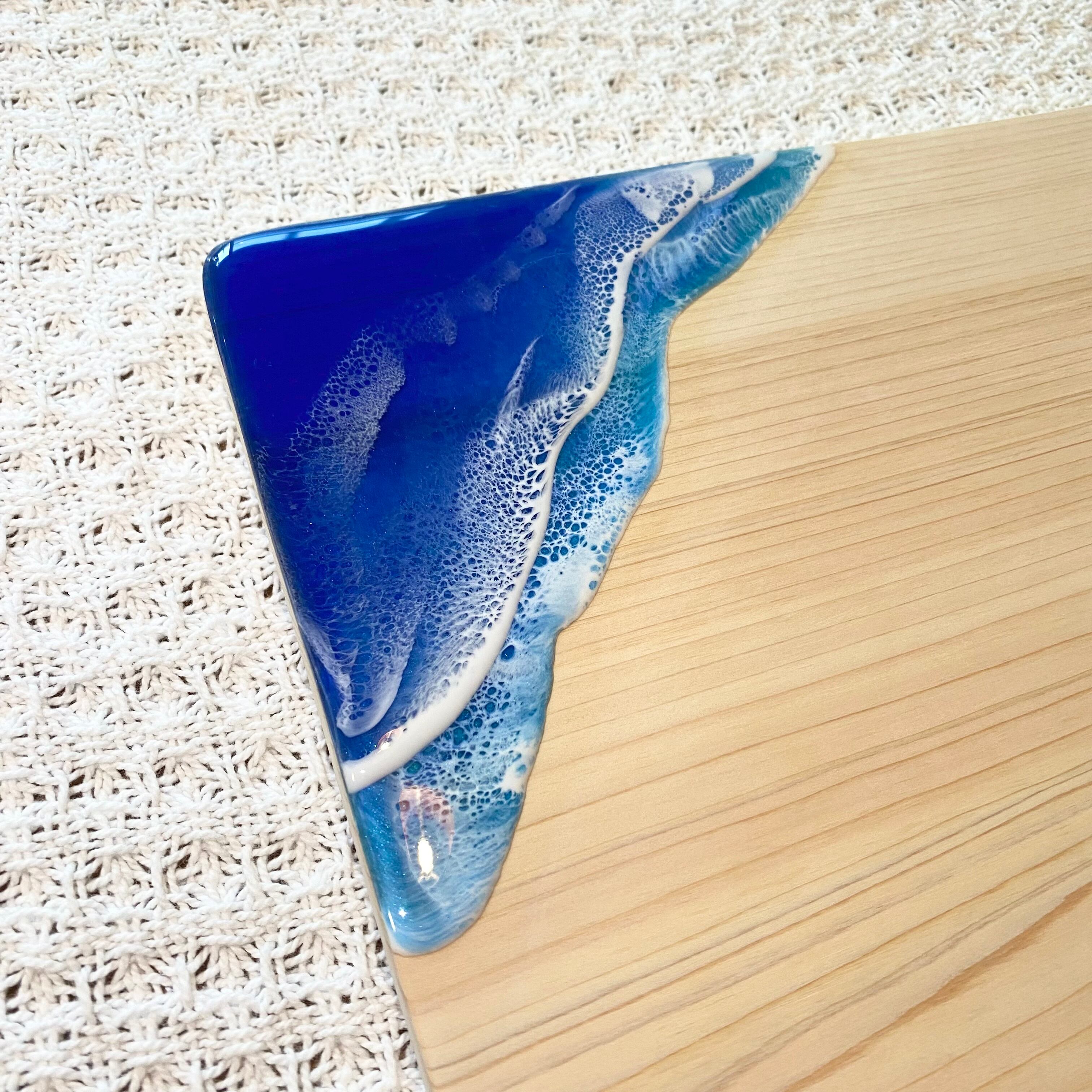 一枚の木をデザインしてカットし、波レジンを描いています。
