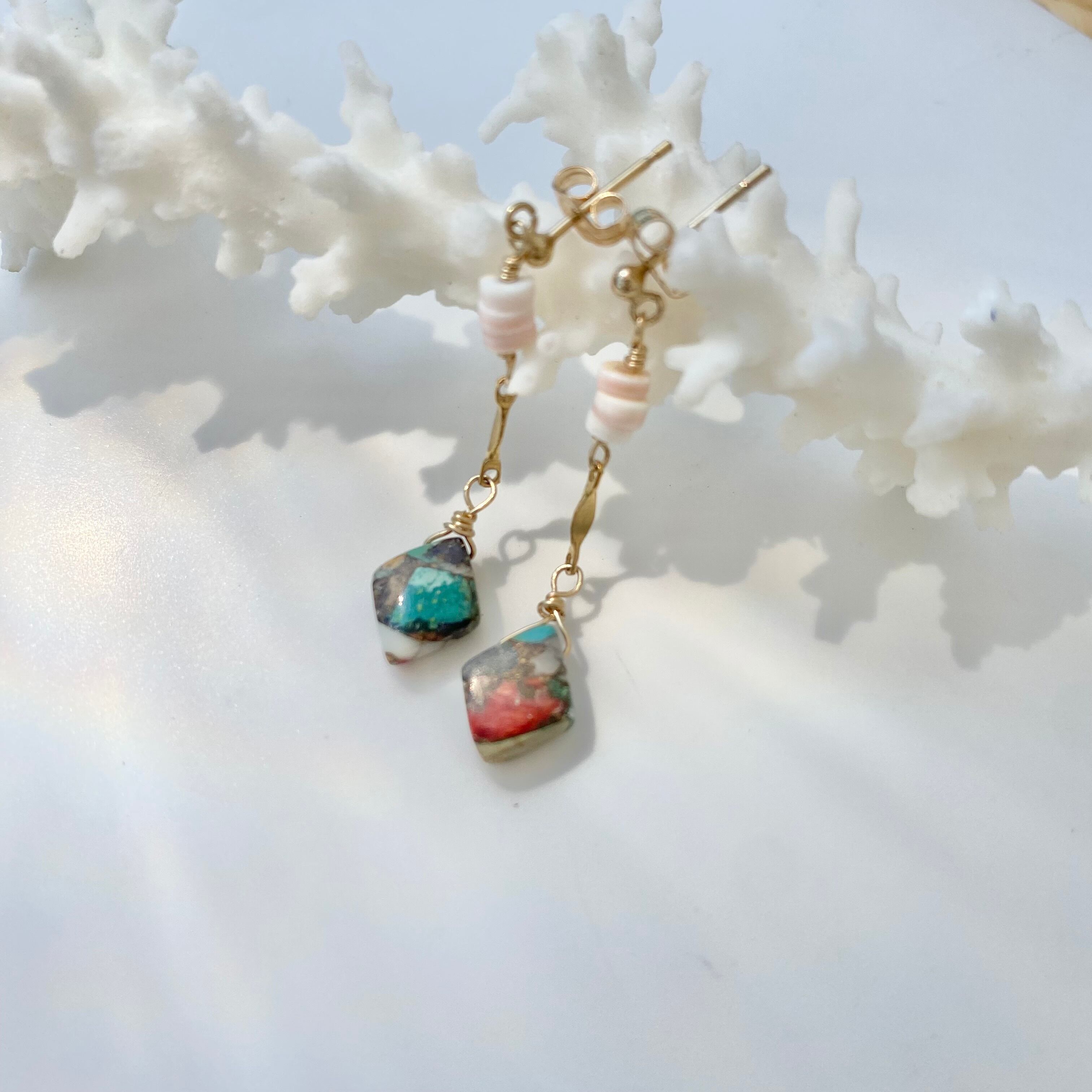 シェル×オイスターカッパーターコイズ14kgfピアス