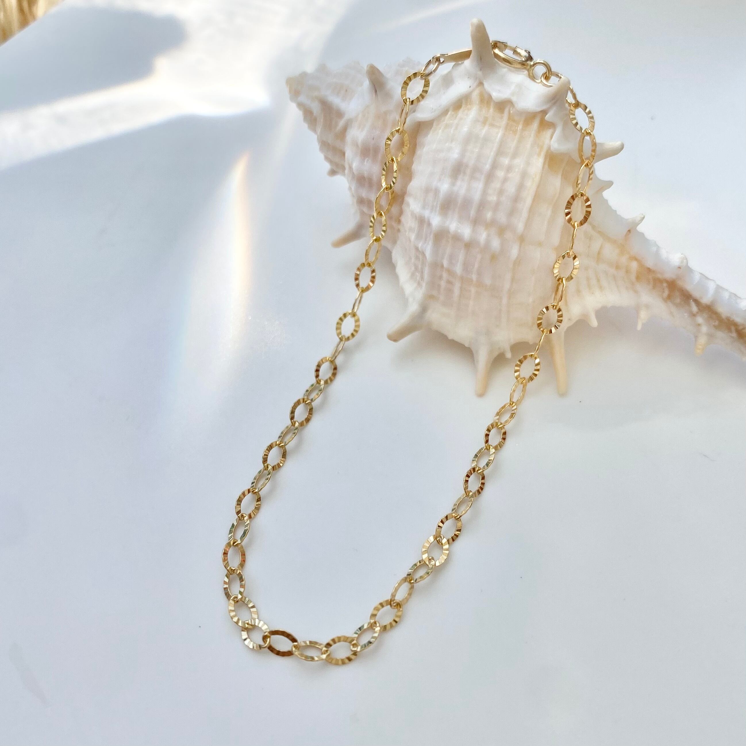 カットの入ったチェーンでシンプルながらも派手さもあるアイテム。
